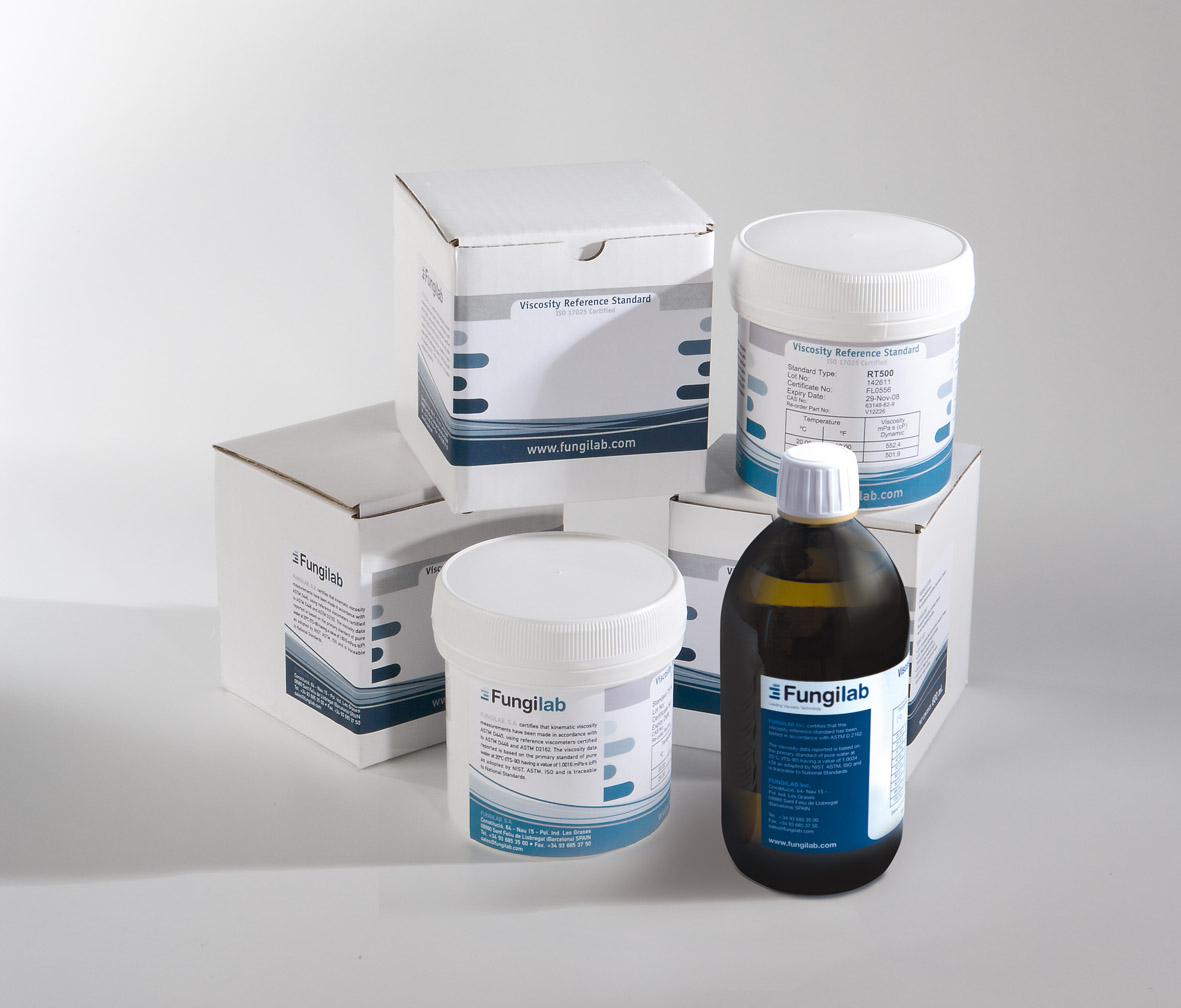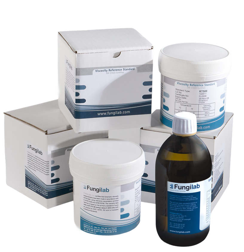 Fungilab offers a wide variety of certified viscosity standards for the calibration and verification of glass capillary viscometers, auto viscometers, rotational viscometers, flow cups and other viscosity measuring equipment.