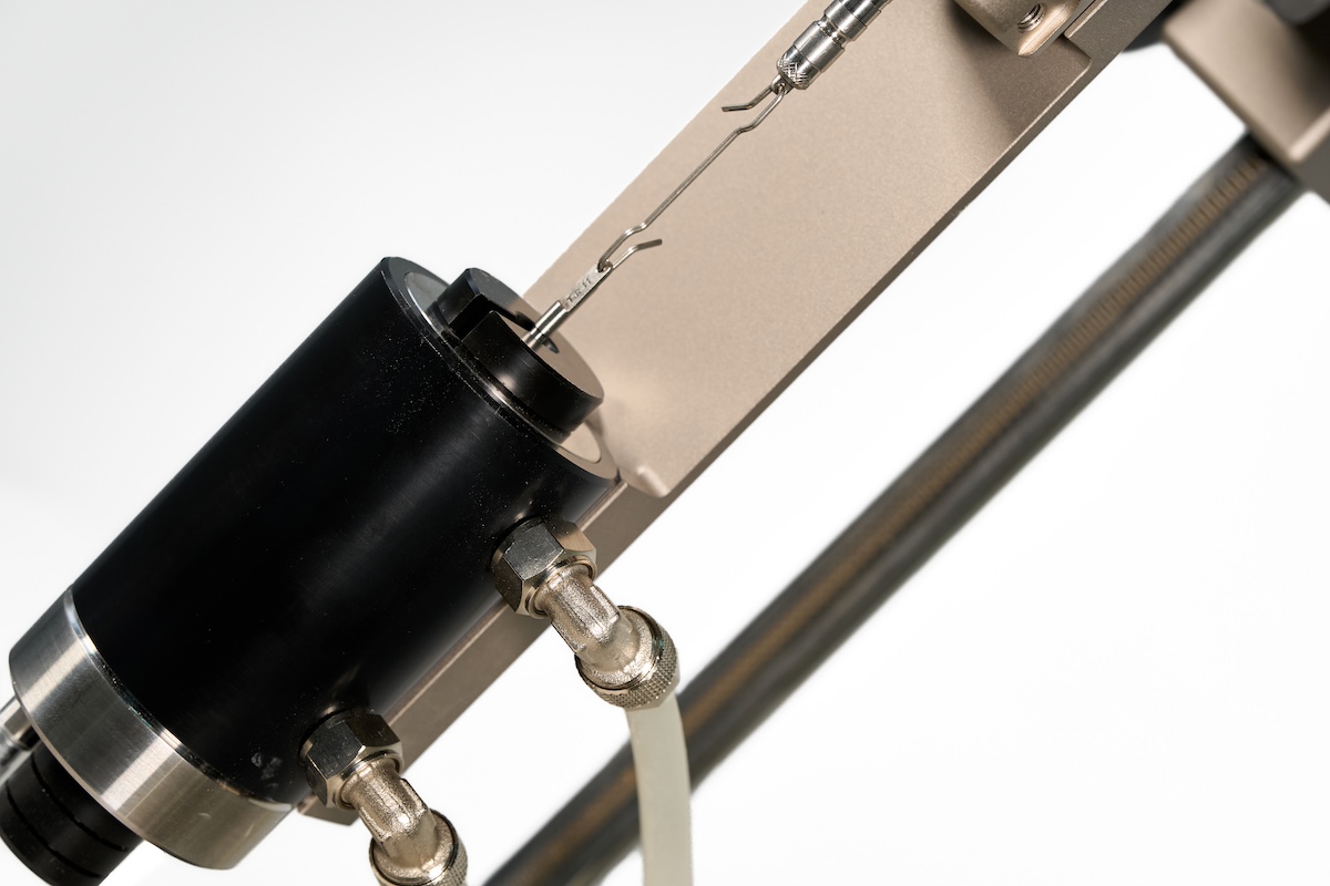 Materials which do not flow easily, cannot be measured using standard methods and standard spindles, since the spindle forms a hole or zone around it by cavitation. When comparative measurements of the consistency or apparent viscosity of this type of products are required, it is advisable to use the HELDAL unit and needle spindles. The measuring head of the viscometer moves up and down smoothly and automatically thanks to HELDAL, staying between pre-established limits and allowing the needle spindle to cut into the fresh material tracing a helicoidal path through the test sample.